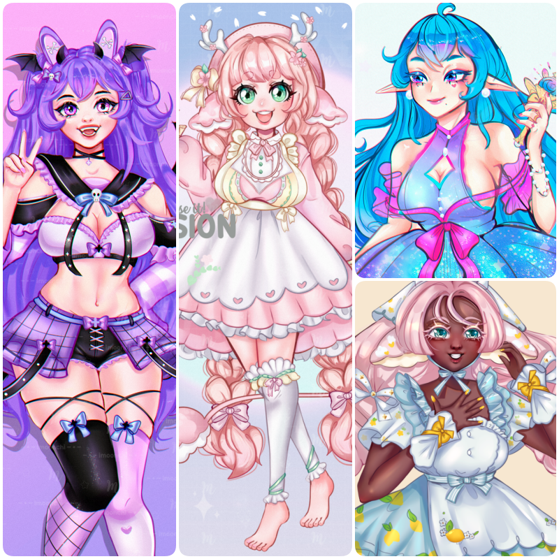♡ these are non-commercial, personal use only. if you are interested in doing merchandise, you must pay 50% aditional regarding royalties/buying the rights.